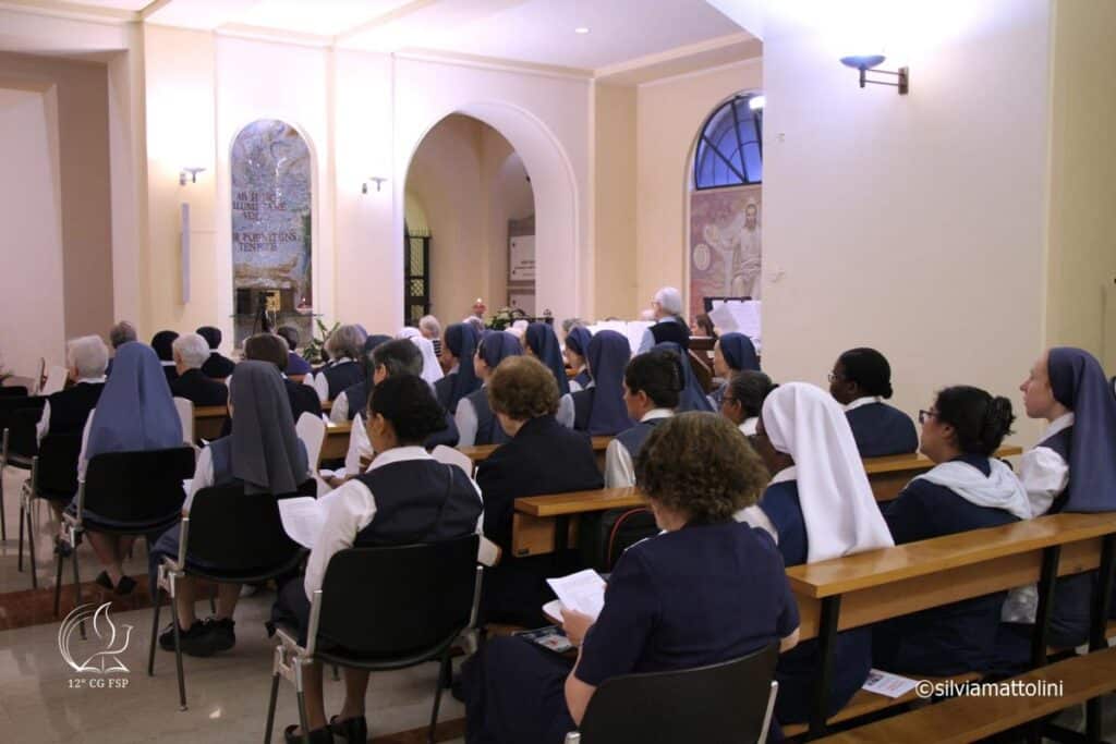 Our Constitutions say that the General Chapter is “the supreme authority of the Congregation…an ecclesial event, an expression of the communion and participation of all the members” (FSP Const. art. 165). Three of us Daughters of St. Paul from the United States/English-speaking Canada province are participating in this beautiful and significant moment of our congregation—Sister Donald Maria, Sister Emily Beata, and Sister Christina Miriam—along with 54 other Sisters from all over the world. (Sister Anne Joan and Sister Margaret Edward are with us as translators.)
