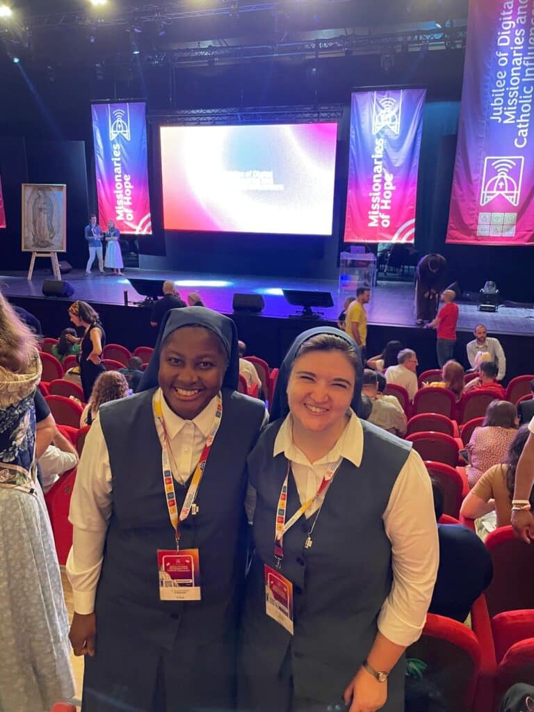 The city is very much alive with pilgrims from all over the world. It’s been full and beautiful (and hot!) days of learning, sharing, celebrating, and mission. The Jubilee of Digital Missionaries and Catholic Influencers, a fruit of the Synod on Synodality, took place on July 28-29. Over 1,100 people from 53 countries participated in this event at Auditorium Conciliazione. Some talks were available for online participation. It was beautiful to meet people who knew us both personally and online, but also knew of our communities and other branches of the Pauline Family in Italy, the United States, Canada, Mexico, Brazil, Columbia, the Philippines, Korea, Malaysia, India, Mozambique, Congo, Kenya, South Africa, Nigeria, Poland, Spain, Australia–all over! They recognized the contribution of the Paulines in the area of communication.
